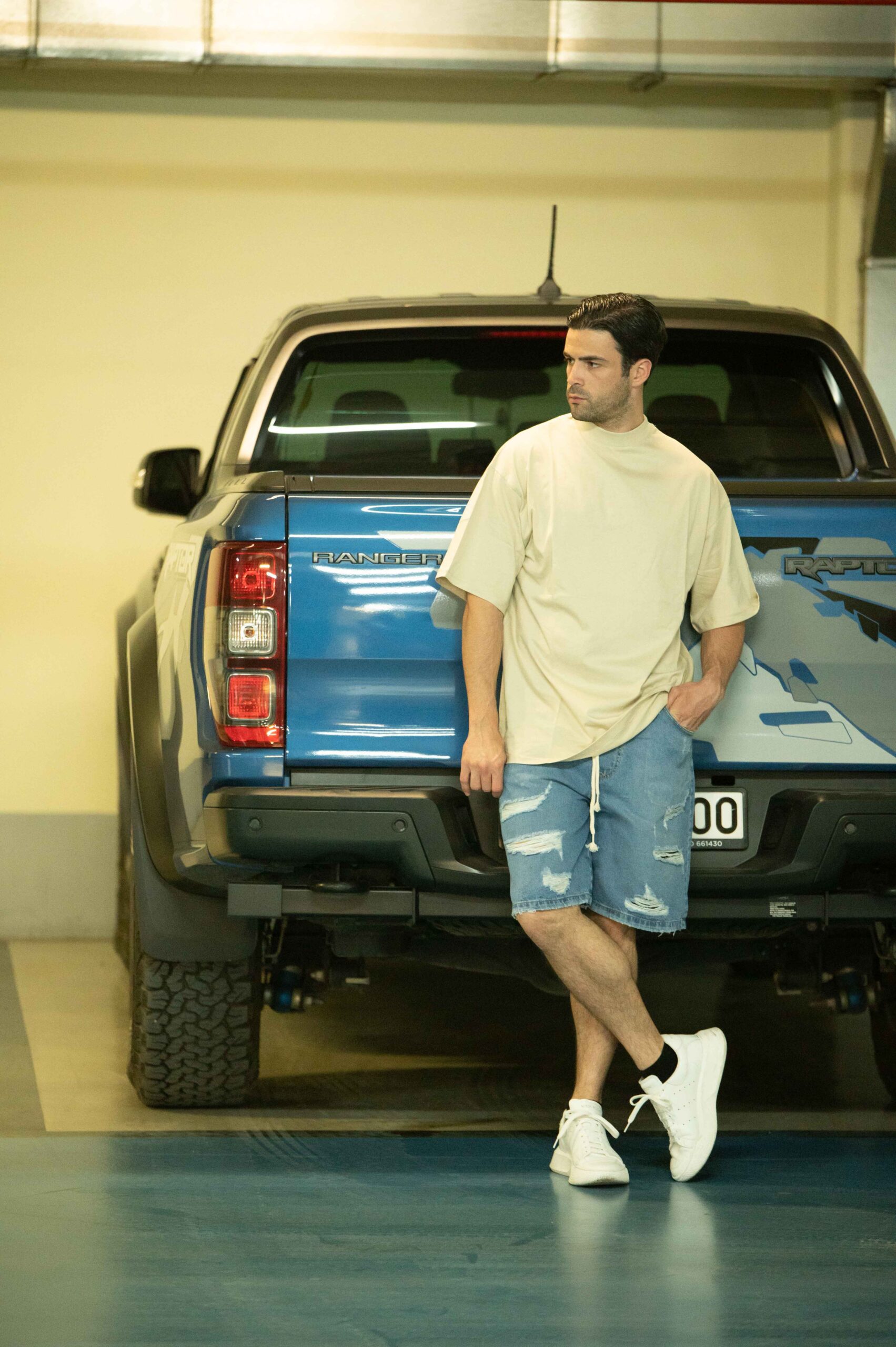 Το μοντέλο φοράει L με ύψος 183 και 83 κιλά !